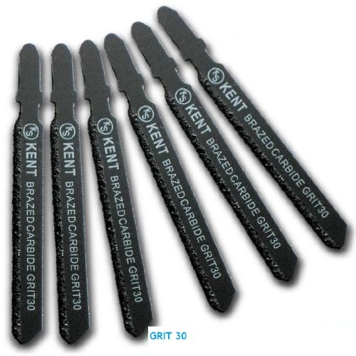 6 Pack, 3" KENT T130RF1, Carbide Coated T-Shank Jig Saw Blade for Ceramic, Tile, Fiberglass, Grit 30